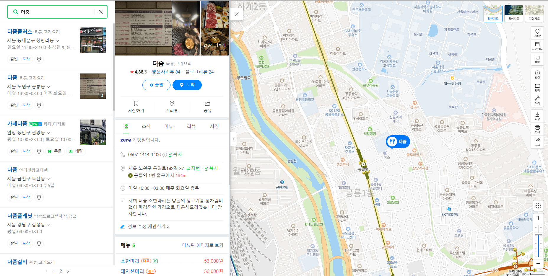 나의 20대를 보낸 공릉동에서 매번 지치거나 고기먹고 싶을때 마다 갔던 더줌. 본가로 돌아가고 친구들도 각자 떠나면서 잘 안가게 되었는데, 반가운 손님을 만나서 오랜만의 향수를 느끼러 방문하였음.