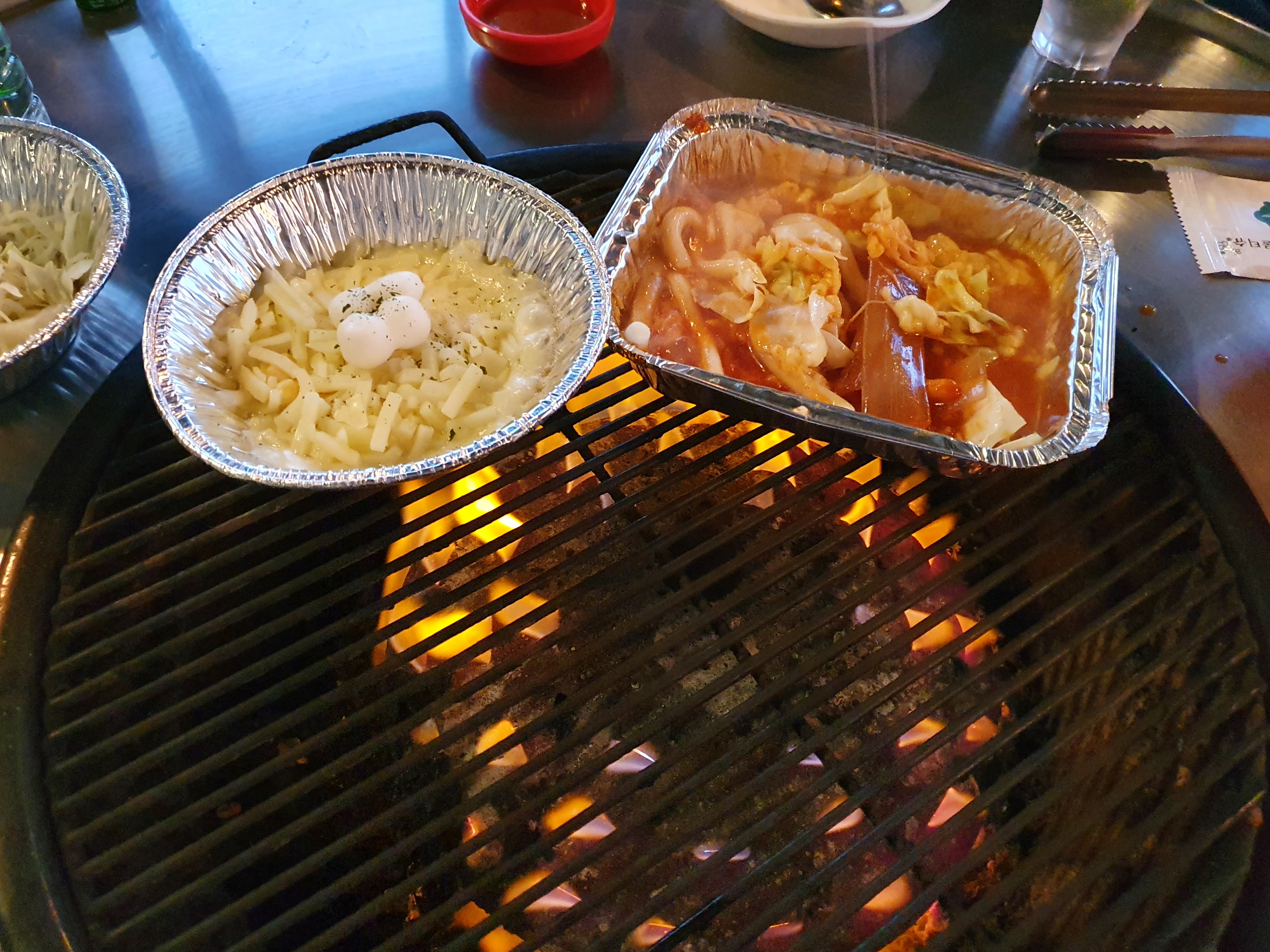 굽는과정이야 그냥 올려놓고 요물딱 조물딱해서 익었다 싶으면 먹으면되고, 크다싶음 가위로 쓱싹쓱싹 잘라먹으면되고, 취향에 맞게 먹으면 됨. 우리는 주먹밥 추가해서 먹었는데 다른데는 날치알같은것도 있고 단무지나 기타 등등 토핑이 있을텐데 여기는 양념된 밥에 김이 전부임. 그래도 깔끔해서 맛있게 잘 먹었음!