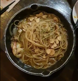 파스타면 추가하면 이렇게 나온다. 마늘의 민족인만큼 마늘도 더 추가해주고 알리오 올리오 먹는 느낌이였음. (이건 동영상으로 찍어서 동영상에서 캡쳐하다보니 화질이 조금 안좋음.)