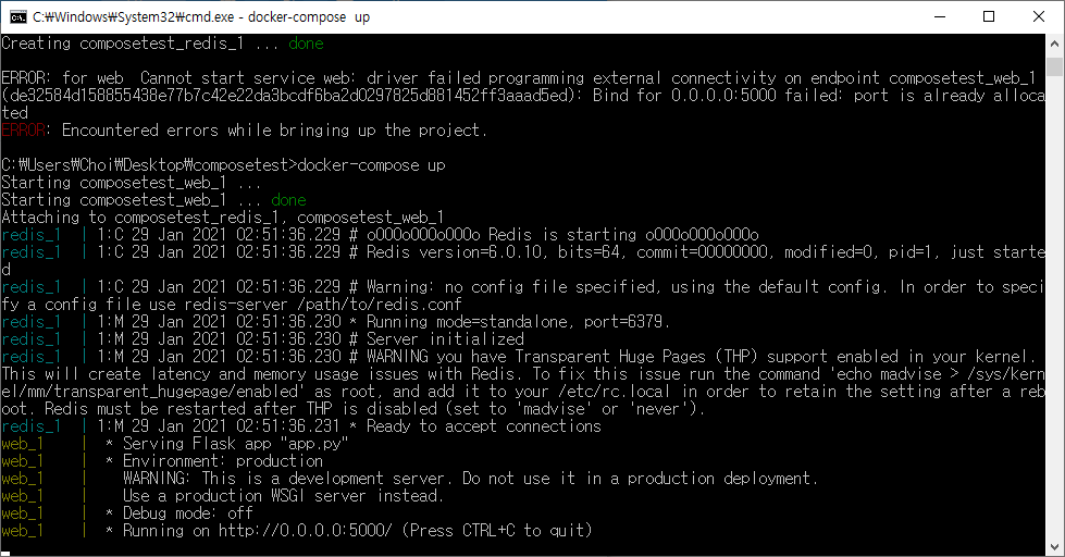 5) docker-compose up