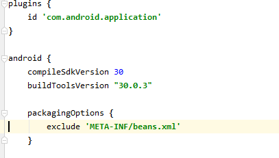 안드로이드에서 앱 만들고 빌드하려고 하는데 More than one file was found with OS independent path ‘beans.xml’ 에러 발생