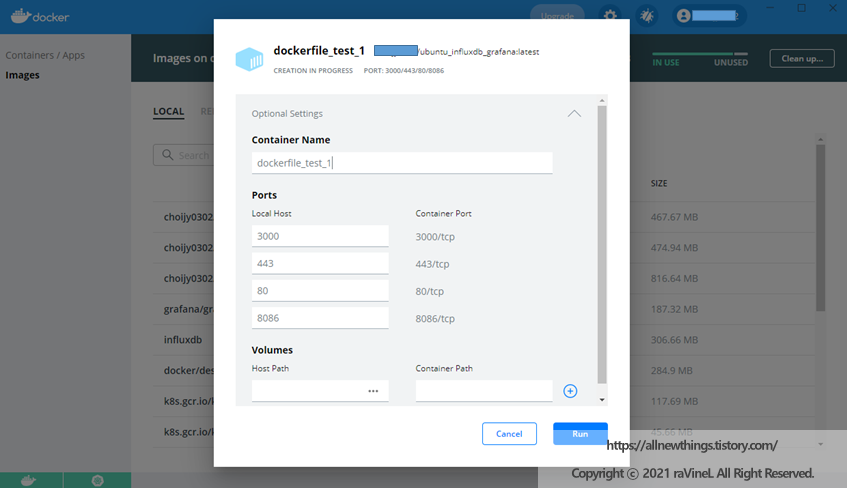 Docker 공부 중 dockerfile을 이용해서 한번에 Grafana, Influxdb 설치 및 접속 테스트 진행