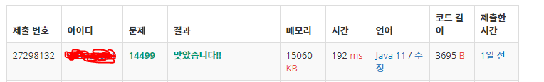 | [백준] [자바] 14501번 : 퇴사 (0) | 2021.03.19 |