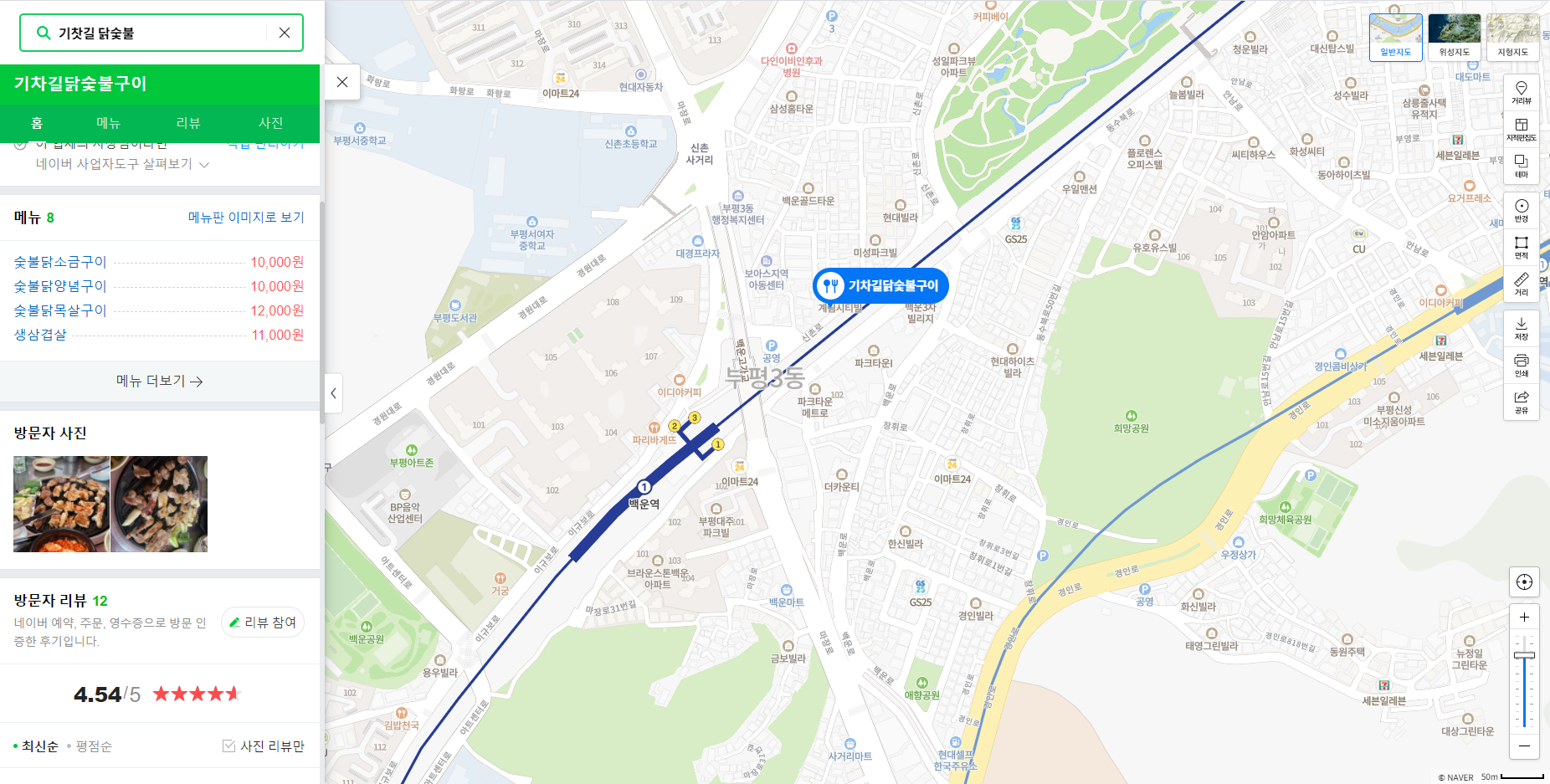 위치는 백운역 3번출구로 나와서 길을 넘어가야 된다! 넘어서 큰길이 아니라 기차길 따라서 조금만 걸어가면 가게를 만날 수 있다.