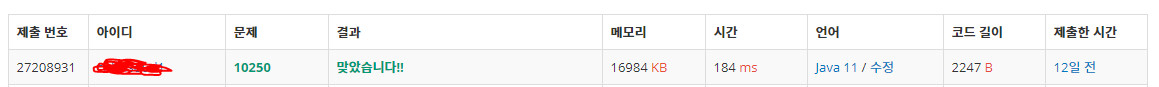 | [백준] [자바] 15686번 : 치킨 배달 (0) | 2021.03.23 |